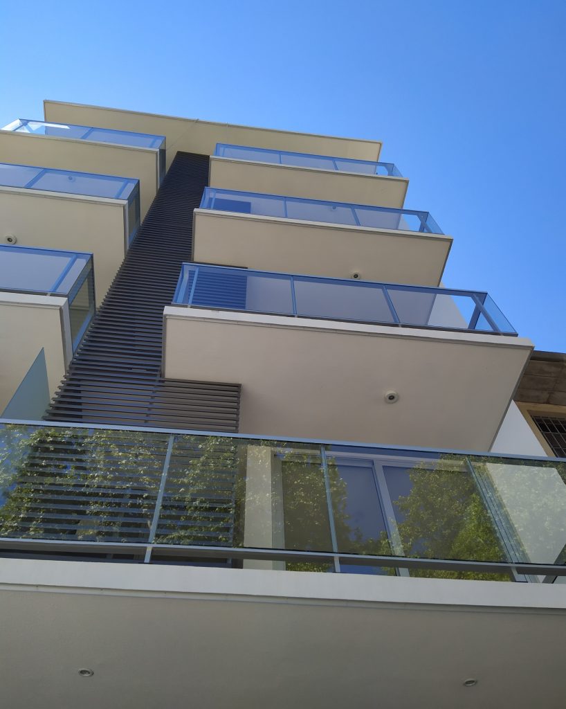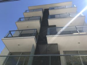 El edificio se construyó con muros exteriores Royal de 100mm. de espesor, rellenos de hormigón y aislación térmica, y muros interiores Royal 100 mm. de espesor. Los muros divisorios entre 2 unidades son 2 muros Royal de 100mm. Entrepisos de hormigón armado. Muros interiores panel Royal revocado y revestido, muros exteriores en terrazas texturados. Ventanas en aluminio con sistema monoblock, con DVH y toldos según normativa.